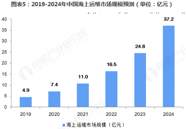 隨著中國(guó)海上風(fēng)電建設(shè)進(jìn)入爆發(fā)期,海上運(yùn)維需求將快速增長(zhǎng),2019年中國(guó)海上風(fēng)電運(yùn)維市場(chǎng)規(guī)模將在4.9億元左右,2024年整體規(guī)模達(dá)到37億元左右,年復(fù)合增長(zhǎng)率約為50%。根據(jù)DNV的測(cè)算,每臺(tái)海上風(fēng)電機(jī)組平均每年有高達(dá)40次停機(jī)故障,整體故障率約3%, 隨著國(guó)內(nèi)大量海上風(fēng)電場(chǎng)的投運(yùn),國(guó)內(nèi)運(yùn)維人員專(zhuān)業(yè)性以及配套設(shè)備的缺乏,再加上海上運(yùn)維天氣的不確定性,導(dǎo)致風(fēng)電場(chǎng)的運(yùn)維問(wèn)題亟待解決。