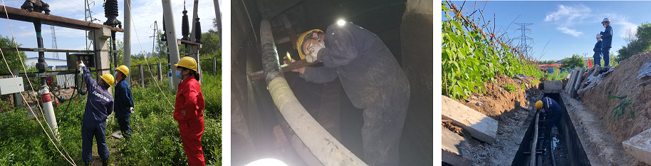 此次大慶之行任務(wù)繁重,珠高檢測(cè)主要針對(duì)110千伏鐵人甲乙線和110千伏東湖甲乙線四條電纜進(jìn)行外護(hù)套故障定位。110千伏電纜的外護(hù)套大多采用的是波紋鋁護(hù)套擠壓聚乙烯絕緣外涂石墨導(dǎo)電層的原材料。外護(hù)套在敷設(shè)或運(yùn)行中,難免會(huì)因?yàn)榉N種原因出現(xiàn)受損現(xiàn)象,而外護(hù)套一旦受損,不僅會(huì)降低電纜輸送容量,還會(huì)加速電纜金屬套腐蝕,其腐蝕處產(chǎn)生的電場(chǎng)集中,易產(chǎn)生局部放電和引發(fā)電樹(shù)枝,嚴(yán)重影響電纜壽命,甚至威脅電纜運(yùn)行安全。