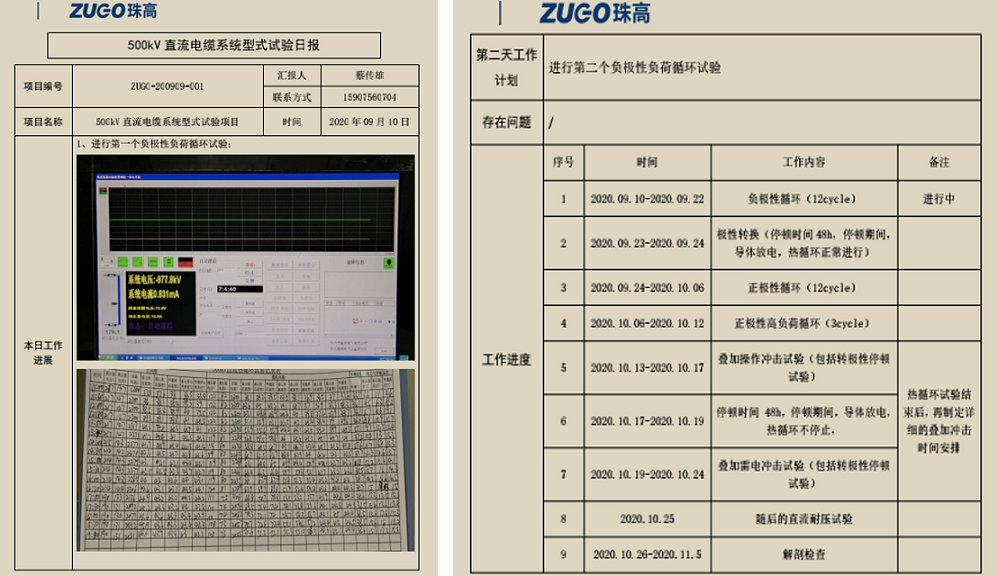 相對(duì)于±500kV,±535kV的電壓等級(jí)更高,從設(shè)備、樣品上有著更高的要求。珠高檢測(cè)充分發(fā)揮自身設(shè)備、檢測(cè)技術(shù)水平優(yōu)勢(shì),分別從技術(shù)管理、組織管理、安全管理和應(yīng)急處理等方面保障試驗(yàn)的順利進(jìn)行。試驗(yàn)前期,珠高檢測(cè)以現(xiàn)場(chǎng)交流的方式確定試驗(yàn)技術(shù)方案;試驗(yàn)過程中,建立匯報(bào)機(jī)制,根據(jù)項(xiàng)目運(yùn)行情況,每日進(jìn)行項(xiàng)目匯報(bào),確保試驗(yàn)的順利實(shí)施;同時(shí)在試驗(yàn)中對(duì)委托方提出的疑問設(shè)有視頻會(huì)議及專家答疑的解答方式。